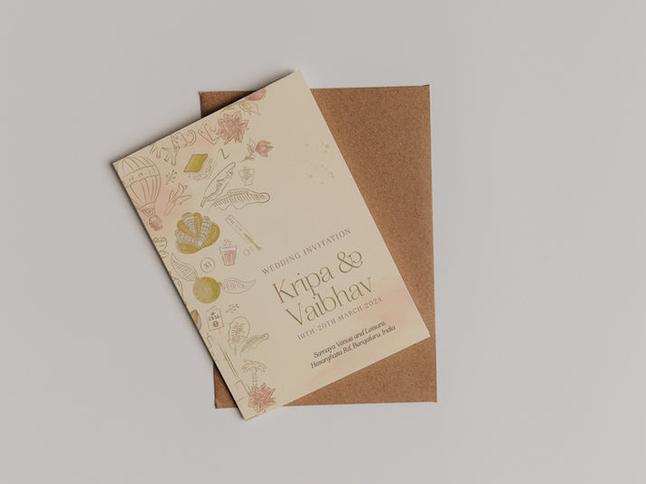Created cohesive brand system spanning digital invitations, wedding rituals brochure, welcome hamper cards, gift tags, and function easels. Successfully balanced personal storytelling with traditional wedding aesthetics. Client was thrilled with final results. Project demonstrated ability to manage complex multi-touchpoint projects and client education.