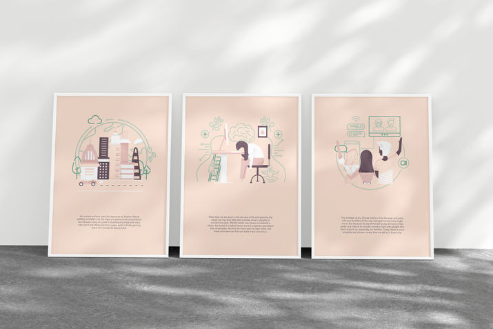 Illustrated three transformative themes: environmental recovery, mental health awareness, and deeper family connections. Feedback was well-received by Sidlee. Though timing prevented placement, the project demonstrated ability to tackle complex social topics through thoughtful visual storytelling and conceptual illustration.